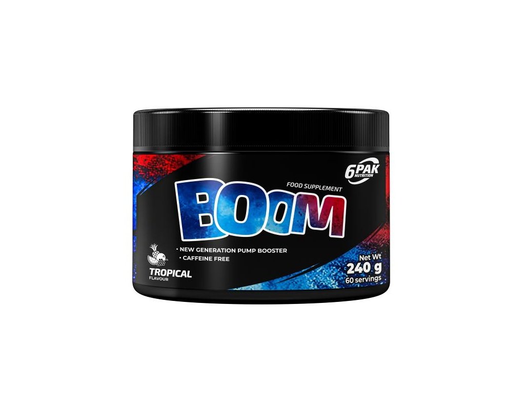 💥 6PAK Boom Tropical – Bez-kofeinová předtréninkovka plná pumpy a energie