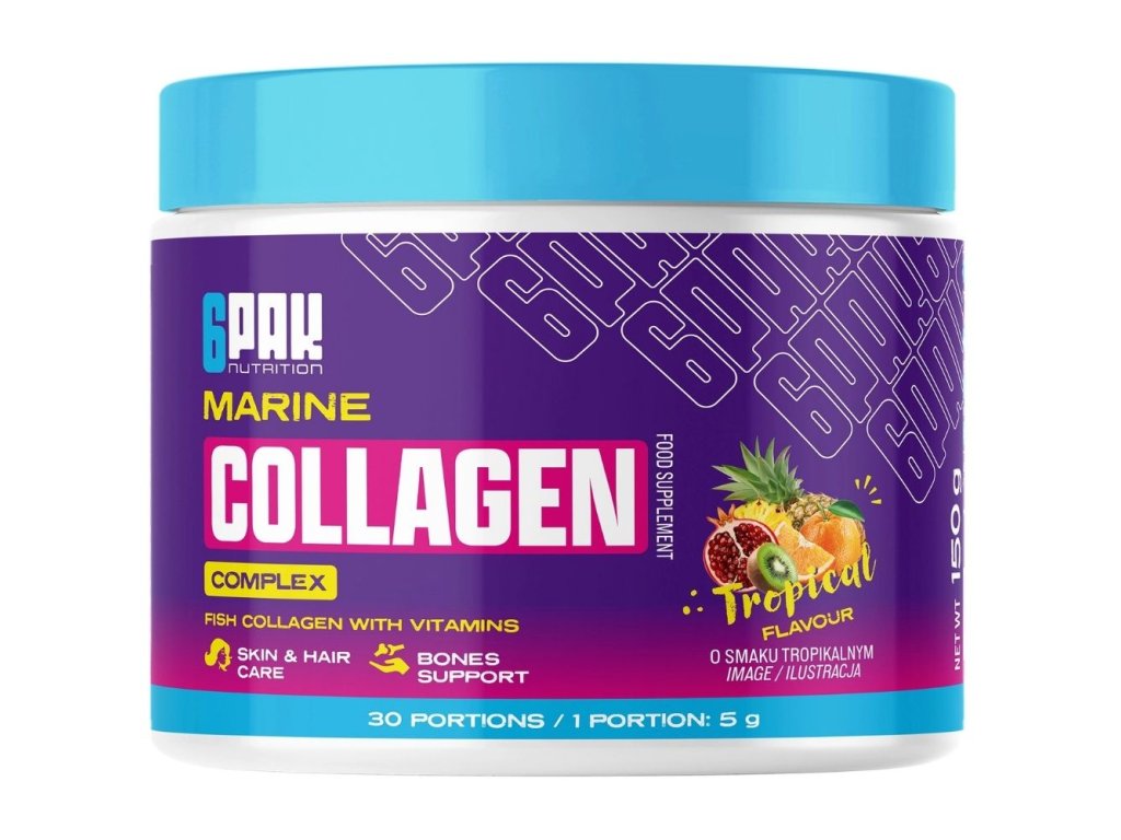 6PAK Marine Collagen Complex je prémiový doplněk stravy v prášku, který kombinuje rybí kolagen, kyselinu hyaluronovou, vitamin C a biotin. Tato komplexní formule je určena pro všechny, kteří chtějí podpořit stav pokožky, vlasů, nehtů a kloubů díky vysoce kvalitnímu hydrolyzovanému kolagenu z mořských ryb.