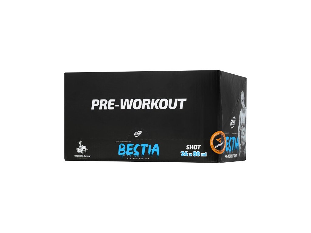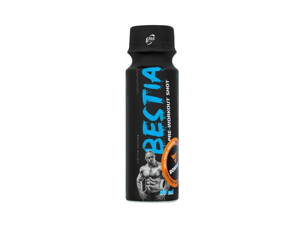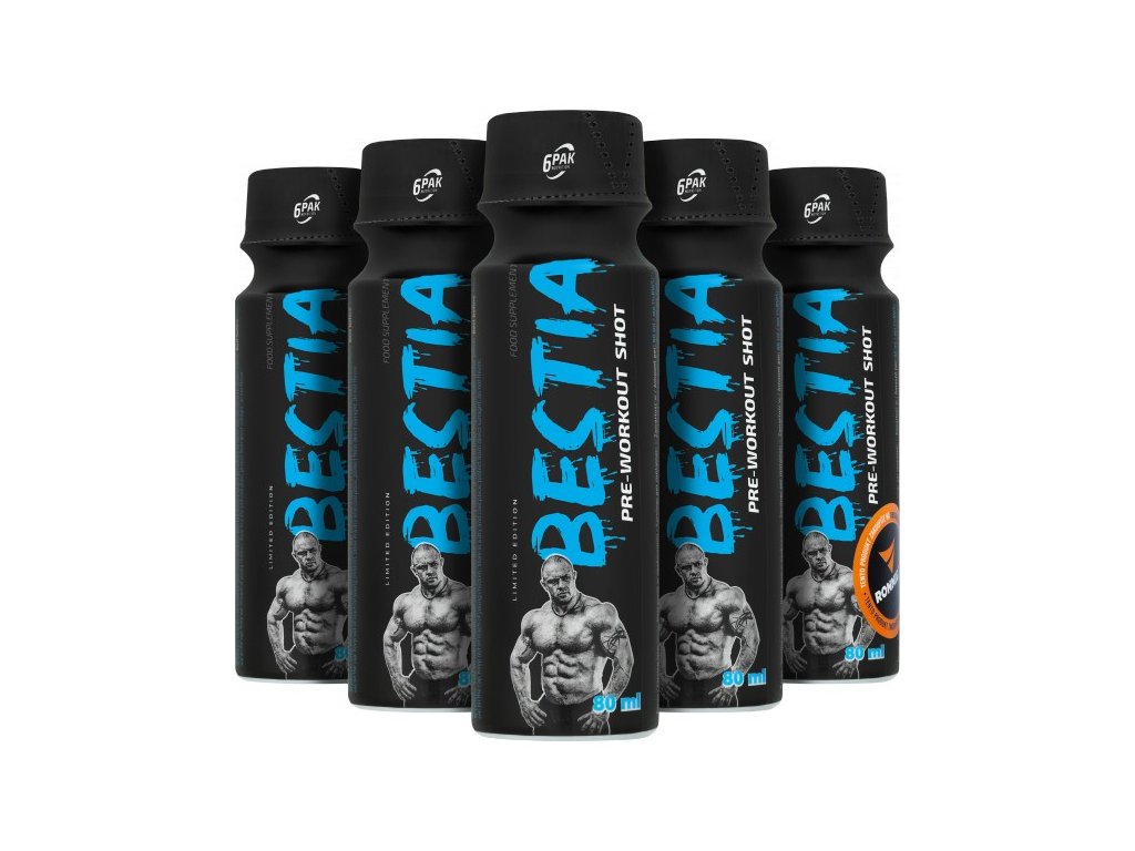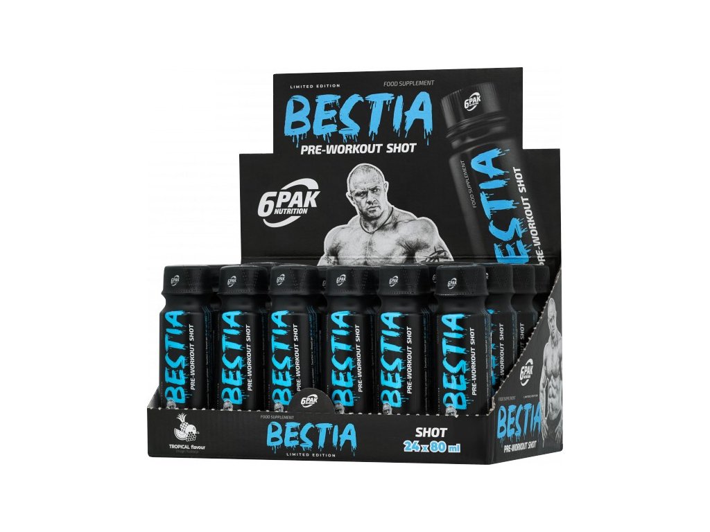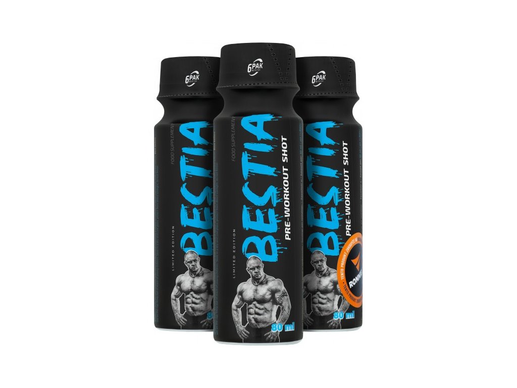 Bestia Shot je unikátní předtréninkový produkt v pitné formě obsahující směs 7 účinných látek určených pro fyzickou i psychickou stimulaci pro podporu vyšších sportovních výkonů a k oddálení únavy. Díky obsahu jablečné šťávy navíc skutečně skvěle chutná!