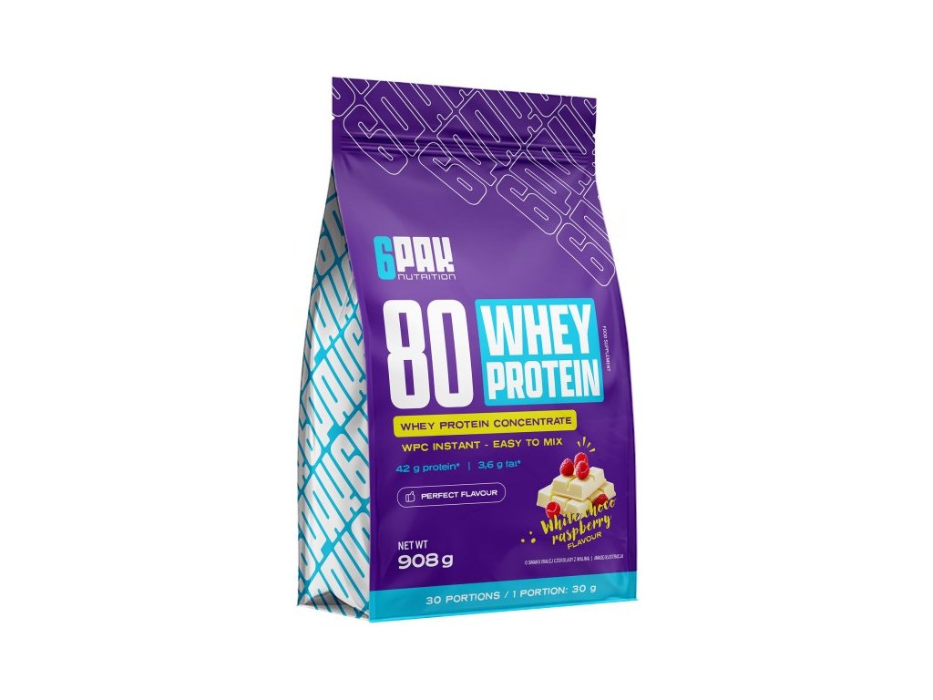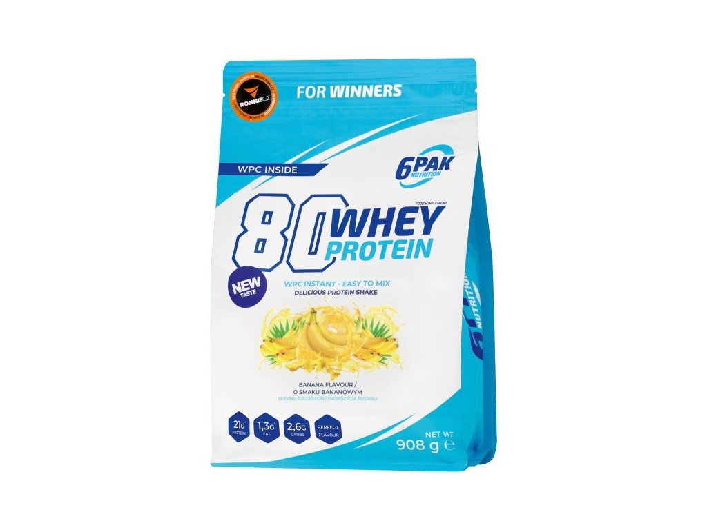 80 Whey Protein od 6Pak Nutrition je pečlivě vyvinutý proteinový doplněk, ze kterého si můžete připravit lahodné koktejly, nebo ho použít jako doplněk k vlastním fit pokrmům. Výběr až z 25 příchutí znamená, že není šance, že Vás tento produkt někdy omrzí. Proteinový doplněk 80 Whey Protein je vynikající pro všechny fyzicky aktivní lidi bez ohledu na úroveň jejich tréninku. Nemusíte být sportovec, abyste mohli užívat proteiny. 80 Whey Protein může používat každý, komu záleží na vzhledu těla, kondici a skvělé pohodě.