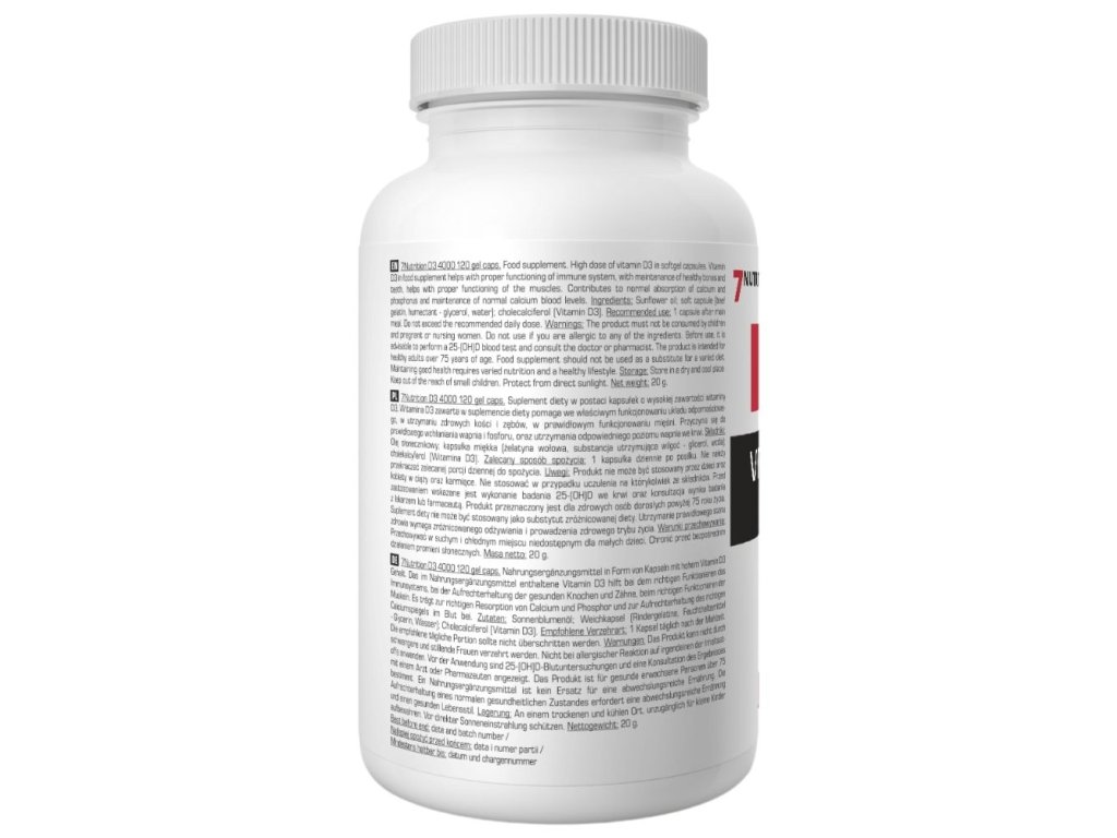 7Nutrition Vitamin D3 4000 IU je vysoce účinný doplněk stravy, který poskytuje optimální denní dávku vitamínu D3 ve snadno polykatelné kapsli. Tento životně důležitý vitamín podporuje imunitu, zdravé kosti, správné fungování svalů a přispívá ke vstřebávání vápníku a fosforu. Ideální pro období sníženého slunečního záření i pro osoby se zvýšenou potřebou vitamínu D. 💛