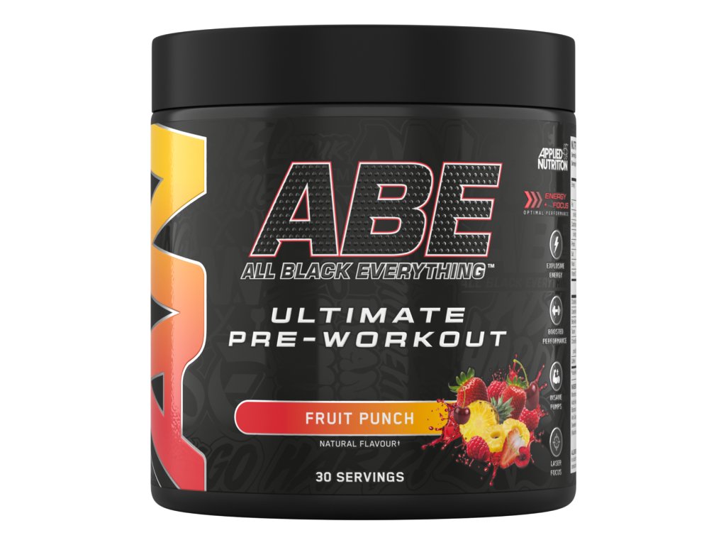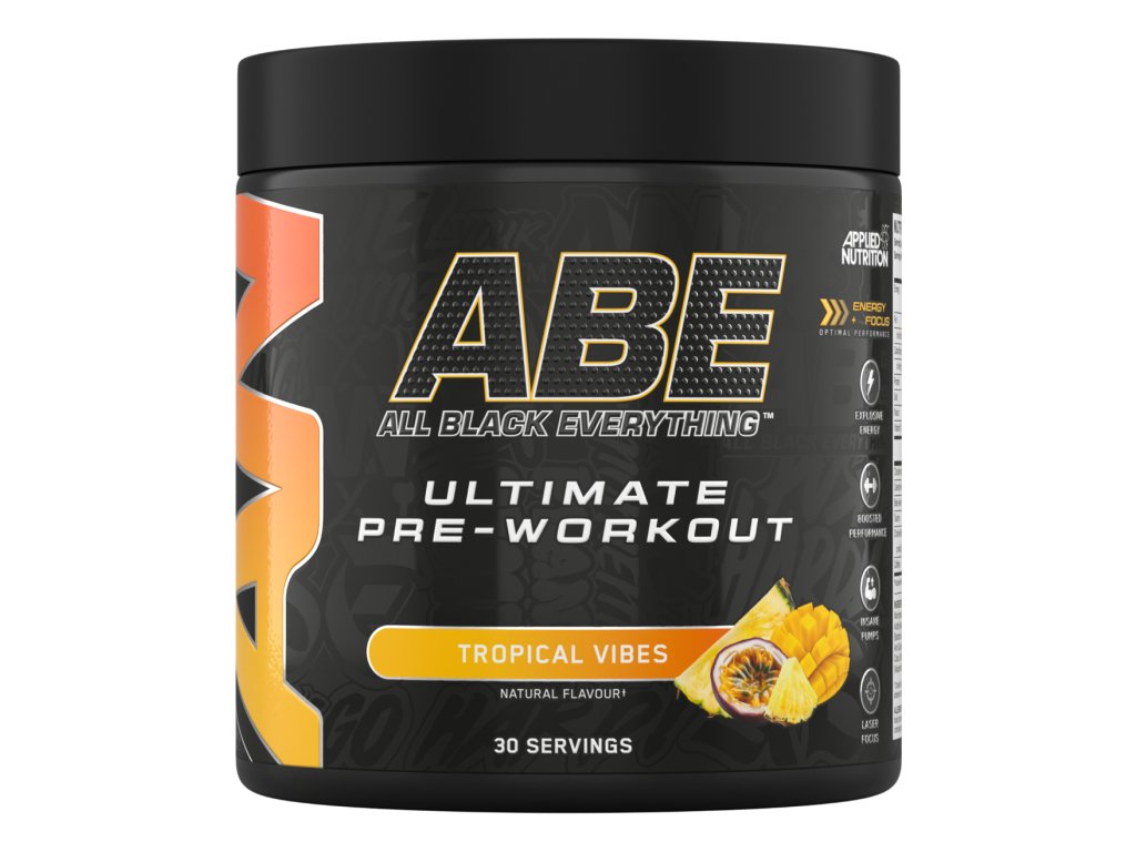 ABE - All Black Everything je komplexní pre-workout pro každého, kdo chce zdolat nové tréninkové výzvy. Obsahuje funkční směs vybraných látek v čele s citrulin malátem, beta alaninem a kreatin monohydrátem, který dokáže zvýšit fyzický výkon během krátkodobých po sobě jdoucích intervalech intenzivního tréninku. Tyto účinky jsou však podmíněny denním příjmem 3 gramů kreatinu, což tento produkt s přehledem splňuje.