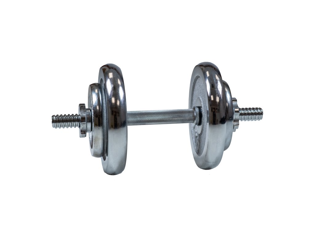 Nakládací činka jednoruční chromová - 14,5 kg s uzávěry. Chromové kotouče mohou být libovolně kombinované. Průměr hřídele 25 mm. Součástí jsou dva uzávěry a těsnící gumička pro lepší dotažení kotoučů.Kotouče (chrom):