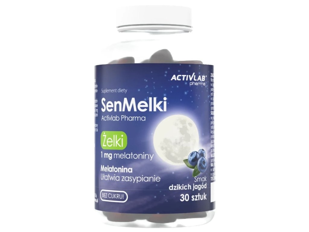 Activlab Pharma SenMelki je doplněk stravy ve formě lahodných gelových bonbonů s příchutí lesních plodů. Každé želé obsahuje 1 mg melatoninu. Produkt neobsahuje přidaný cukr ani želatinu – je založen na pektinu.