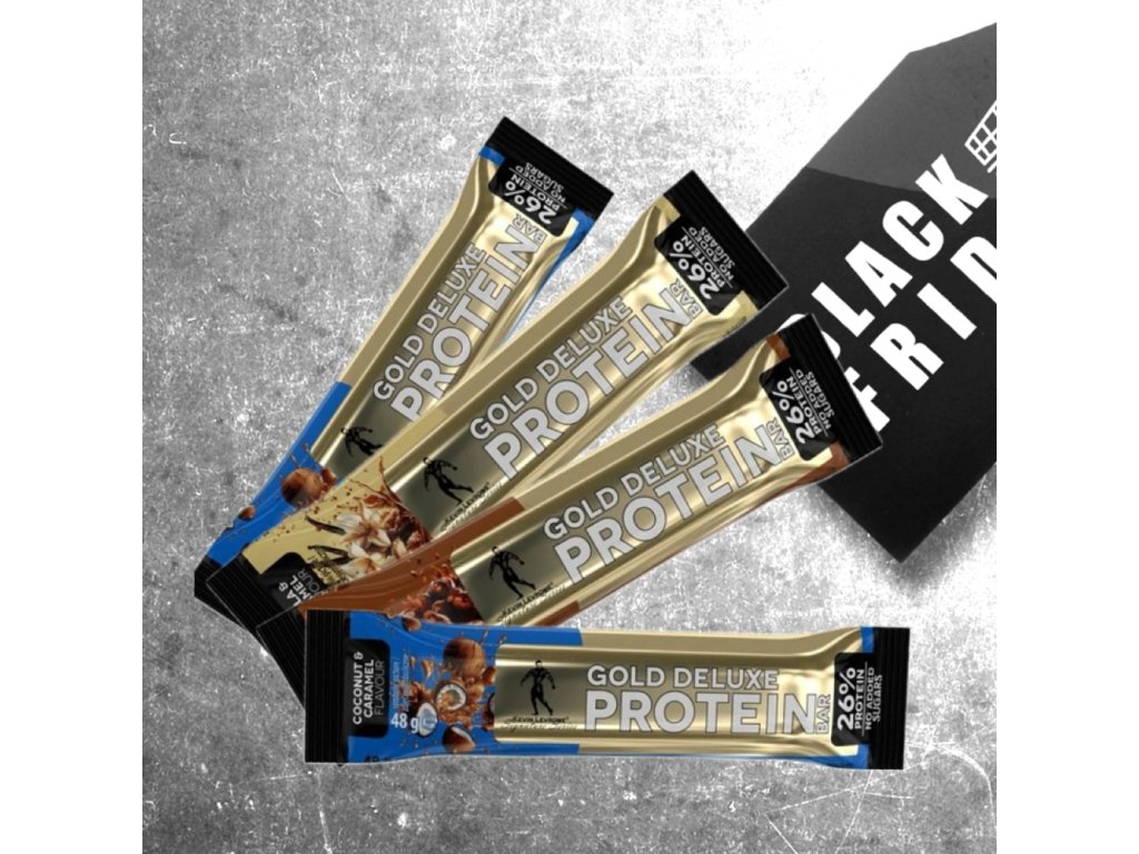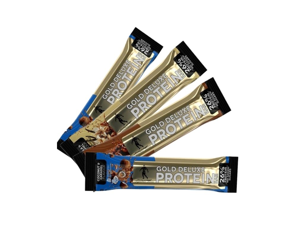 Kevin Levrone Gold Deluxe Bar je ideální volba pro sportovce i aktivní jedince hledající kvalitní proteinový snack bez přidaných cukrů.Hledáte výživný a chutný proteinový snack, který neobsahuje přidaný cukr? Kevin Levrone Gold Deluxe Protein Bar je ideální volbou pro všechny, kdo dbají na své tělo i chuťové buňky. Tato luxusní proteinová tyčinka nabízí až 26 % kvalitních syrovátkových bílkovin, minimum cukru a bohatou čokoládovou vrstvu bez výčitek.