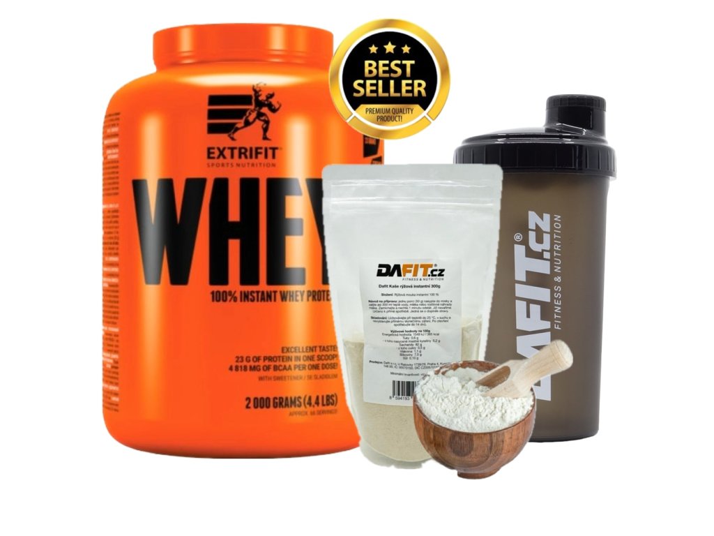 AKCE Extrifit 100% Whey Protein 2000 g + ZDARMA Dafit Kaše rýžová 300 g + Šejkr 700 ml