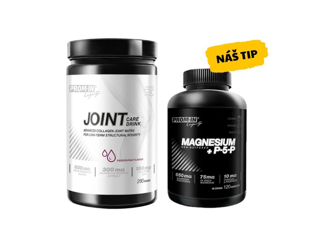 Komplexní balíček pro podporu kloubů, šlach, vazů i regenerace nervového systému. Spojení pokročilé kloubní výživy Joint Care Drink PROM-IN® a Magnesium + P5P PROM-IN® zdarma je ideální volbou pro aktivní sportovce, silově i vytrvalostně zatížené jedince a všechny, kdo chtějí dlouhodobě pečovat o svůj pohybový aparát.