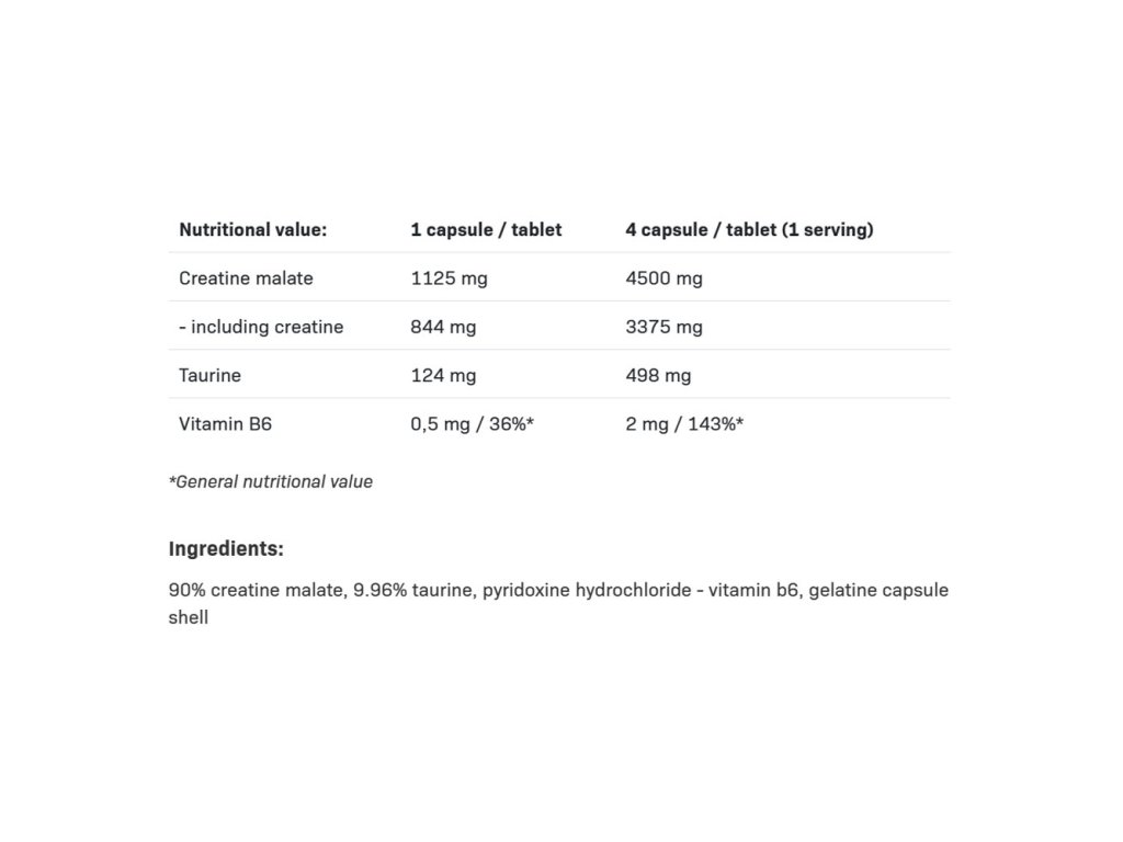 Užívání 3-CREATINE MALATE XTRACAPS je vhodné pro všechny aktivní jedince. Lze jej úspěšně využít během období nabírání objemu, budování síly, vytrvalostního tréninku i během redukční fáze.Upozornění