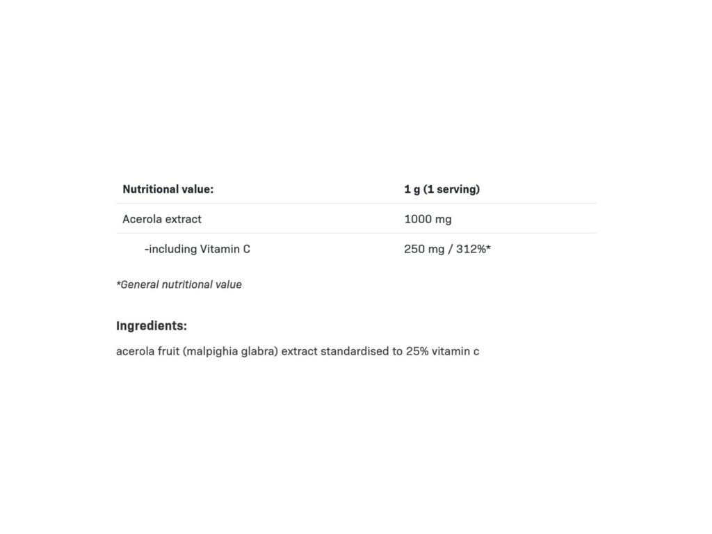 Tělo si nemusí vždy dokázat uložit dostatečné zásoby. V případě vitamínu C je každý přebytek okamžitě vyloučen z těla. To je důvod, proč je pravidelný příjem vitamínu C tak důležitý. Jednou z největších výhod aceroly je, že vitamín C, který obsahuje, je snadno vstřebatelný a poskytuje účinnou ochranu těla před chorobami.