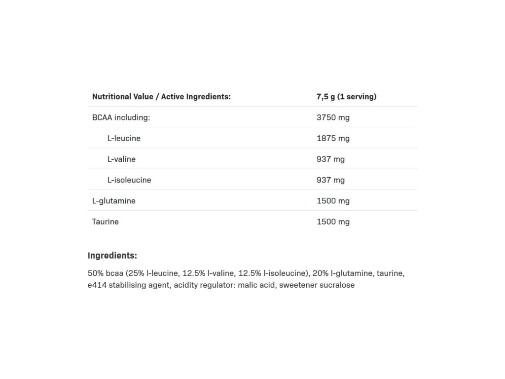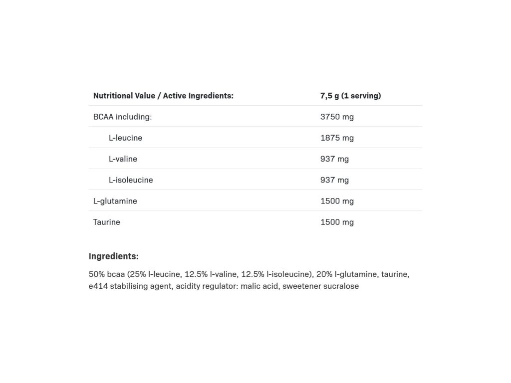 - BCAA aminokyseliny v prášku – až 3750 mg BCAA v jedné dávce