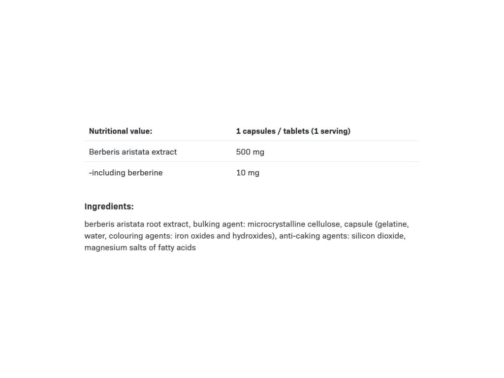 - Extrakt z indického dřišťálu, standardizovaný na 2 % obsah berberinu