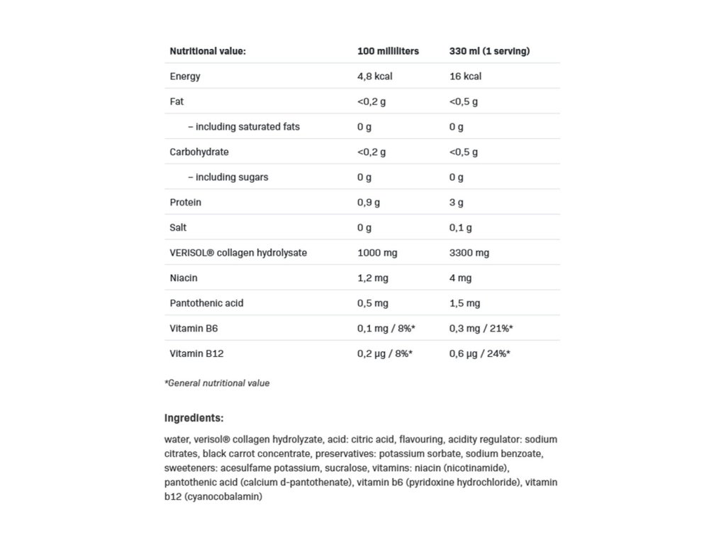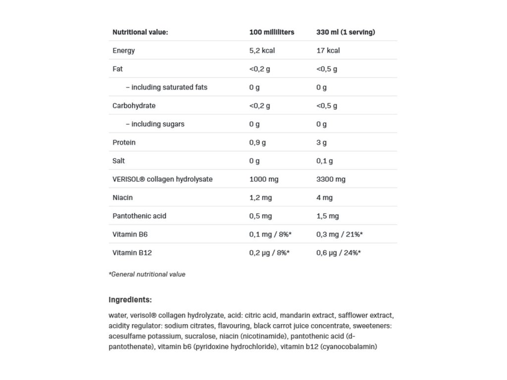 - 3300 mg hydrolyzovaného kolagenu Verisol®