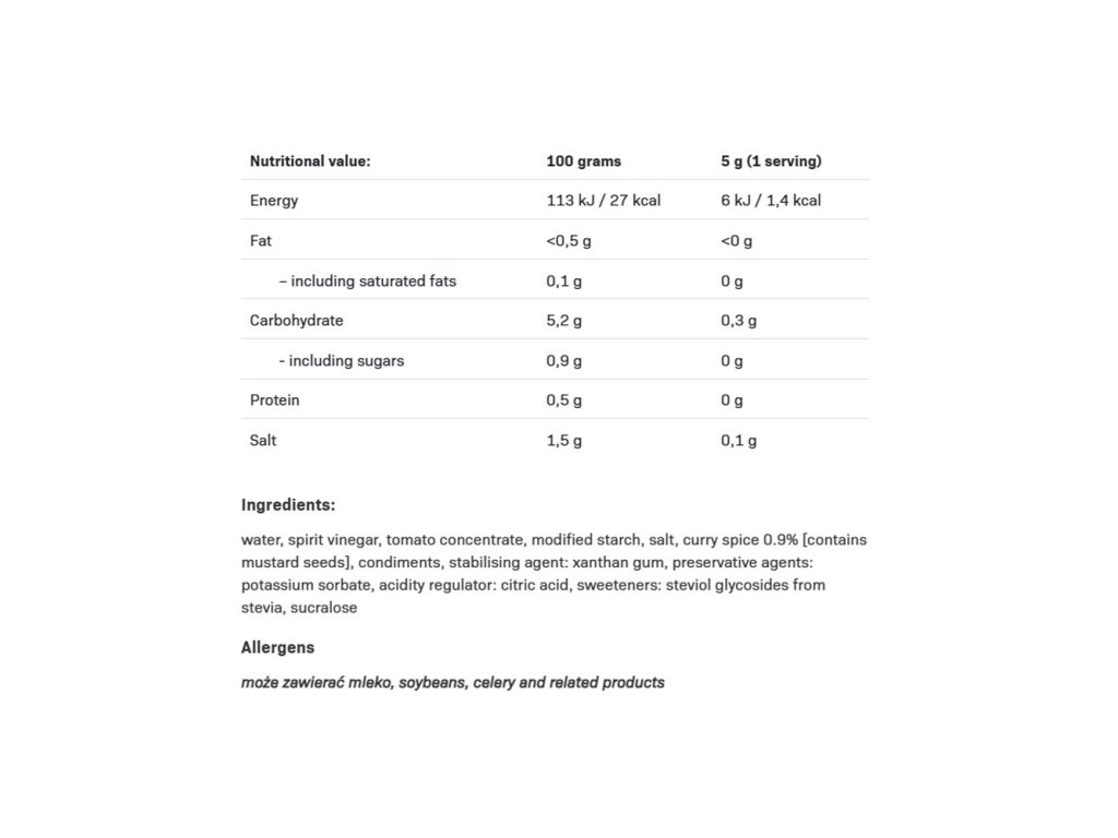 SKVĚLÉ SLOŽENÍDržíte dietu a hlídáte si postavu? Chcete jíst chutná jídla a přitom hubnout? Hledáte pestrost ve své přísné dietě? Vyberte si CURRY SAUCE: 100% chuť, 0% tuk, 0% cukr a 0% výčitek!