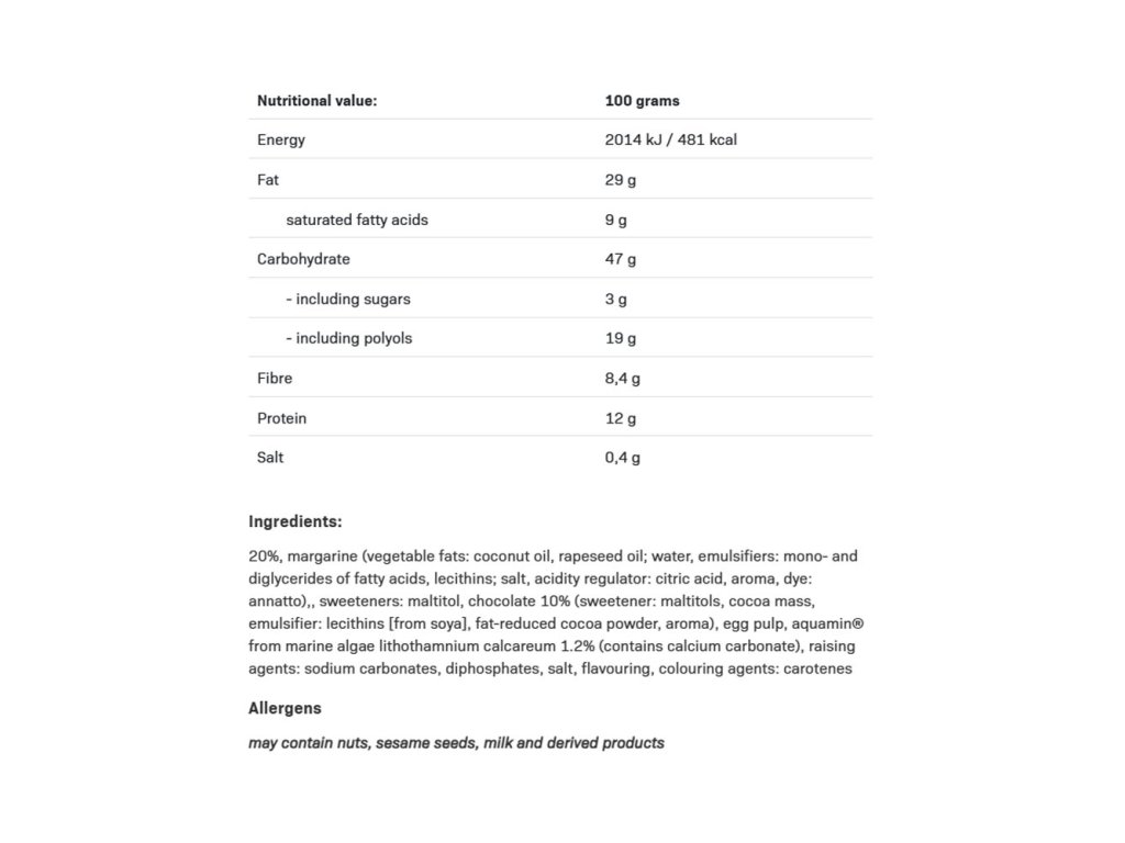 Používejte podle individuálních potřeb. Obsahuje sladidlo. Neobsahuje přidaný cukr. Obsahuje přirozeně se vyskytující cukry. Nekonzumujte v případě alergie. Nadměrná konzumace může způsobit projímavý účinek. Může obsahovat stopy ořechů, sezamu, mléka a mléčných výrobků. Aquamin® je registrovaná ochranná známka společnosti Marigot Limited.Dávkování