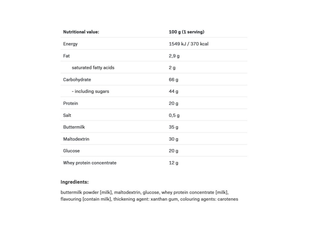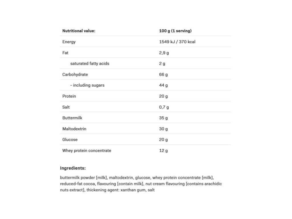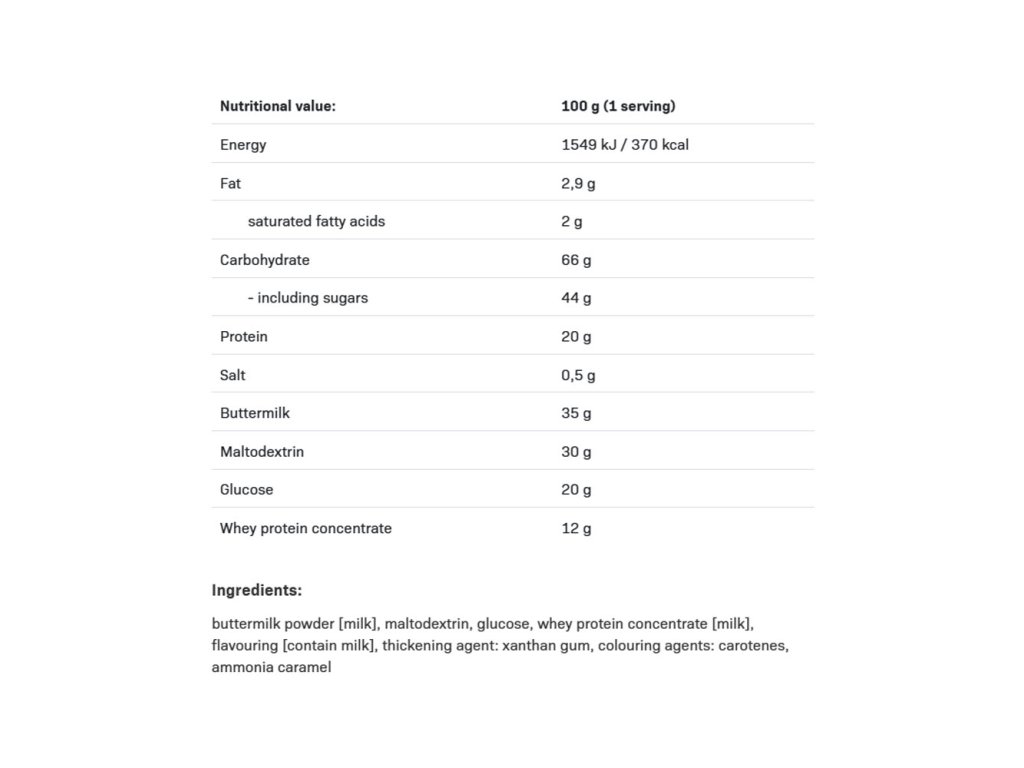 SLOŽENÍ, CHUŤ & KVALITAGAINER DELICIOUS je doplněk stravy s obsahem sacharidů přibližně 61–66 % z celkové směsi. Obsahuje také 20 g bílkovin v jedné porci, zatímco obsah tuku je pouze 2,9–3,6 g na 100 g. Díky své směsi sacharidů s různou rychlostí vstřebávání poskytuje GAINER DELICIOUS energii po delší dobu.