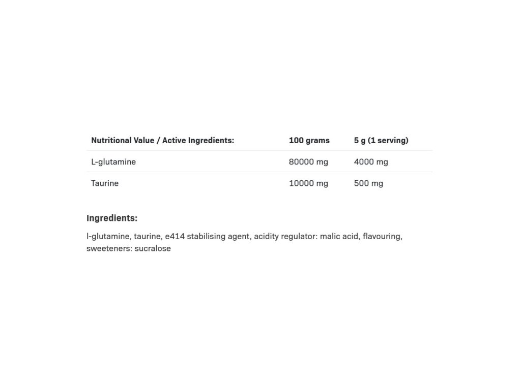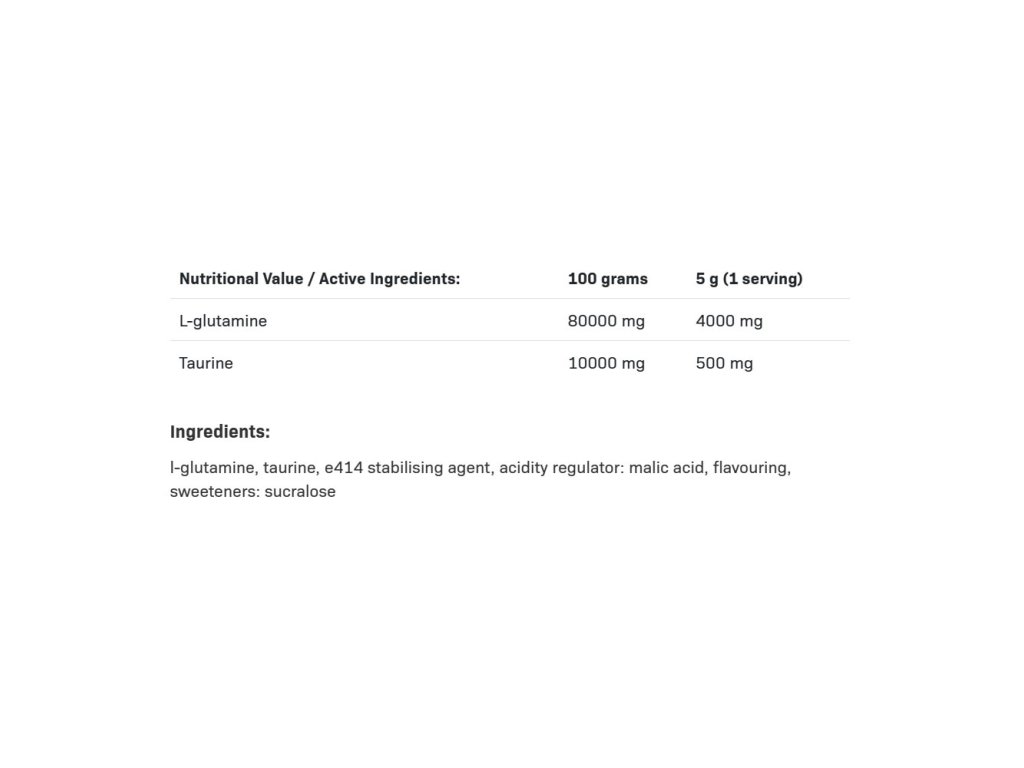 L-glutamin je jednou z nejběžnějších aminokyselin v lidském těle, přirozeně obsažený ve svalech a tkáních. Je oblíbenou složkou doplňků stravy pro fyzicky aktivní jedince, zejména v obdobích zvýšené zátěže. Je volen sportovci různých disciplín a je běžnou součástí každodenní suplementace – jak během období budování kondice, tak i intenzivního tréninku.GLUTAMINE RECOVERY AMINO je produkt, který splňuje požadavky těch, kteří trénují ve vysoké intenzitě. Jednoduchý, účinný a bez kompromisů – navržený tak, aby vás podpořil tam, kde to nejvíce potřebujete.