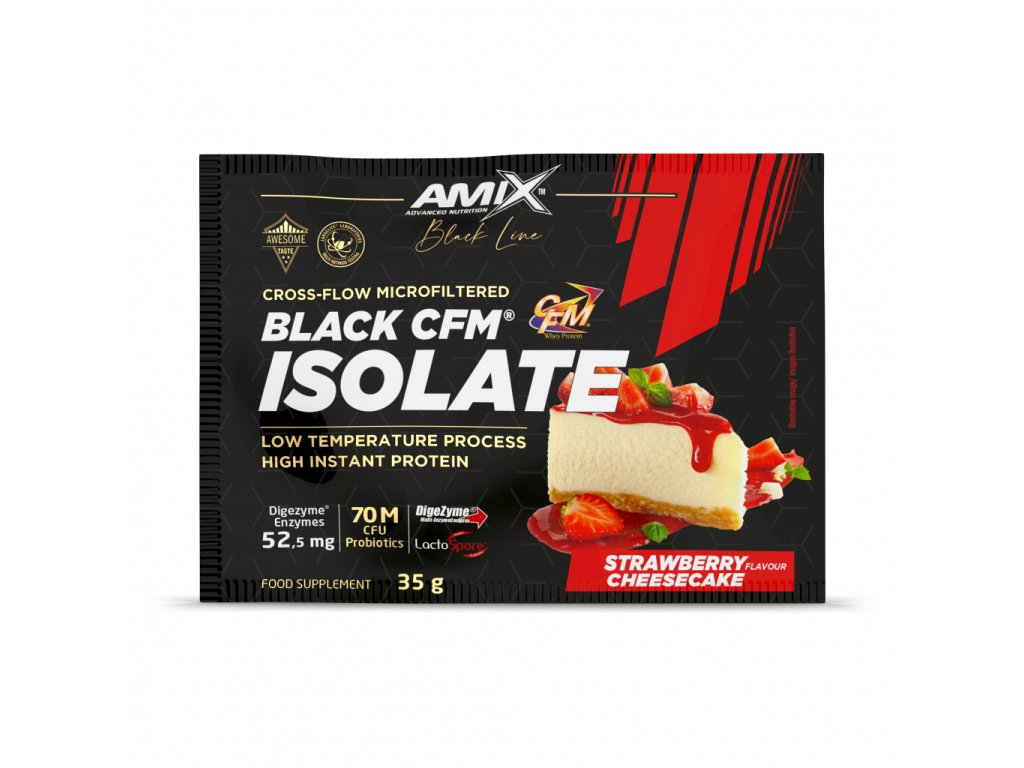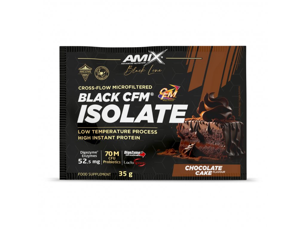 Amix™ Black CFM Isolate je syrovátkový bílkovinný izolát, prémiové kvality, obohacený o probiotika (Lactospore) a enzymový komplex Digezyme. Díky tomu je Black CFM® Isolate opravdu rychlý a lehce stravitelný. Poskytuje celé spektrum aminokyselin přirozeně se vyskytujících v syrovátkovém proteinu, včetně nejvyšší koncentrace BCAA a dalších esenciálních aminokyselin. Protein přispívá k růstu svalové hmoty k udržení svalové hmoty.Benefity: