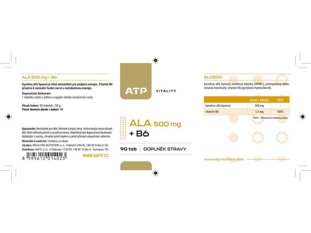 ALA 500 mg + B6 je moderní doplněk stravy navržený pro každodenní podporu metabolismu, nervového systému a obranyschopnosti organismu. Kombinuje dvě klíčové látky – kyselinu alfa-lipoovou (ALA) a vitamin B6 – jejichž synergický účinek působí jako silná opora pro tělo vystavené stresu, únavě nebo nerovnováze.