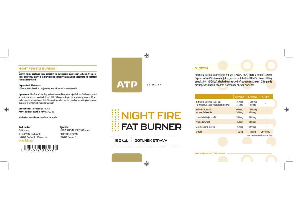 ATP Vitality Night Fire Fat Burner 180 tob