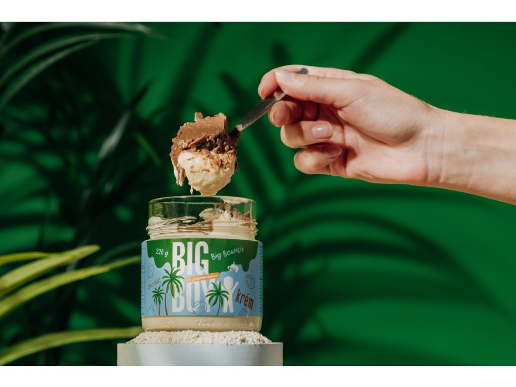 Když se spojí jemný kokos, křupavé mandle a poctivá mléčná čokoláda, vznikne krém, který si prostě zamiluješ. Big Bountík je sladký tropický útěk do světa, kde se nemusí nic řešit – jen si užívat dokonalou kombinaci chutí. A aby toho nebylo málo, je to proteinový krém se sladidlem, takže kromě potěšení dodá i pořádnou porci bílkovin.Krémová konzistence se ti rozplyne na jazyku a kokosová svěžest tě okamžitě přenese na pláž, i kdyby bylo venku sychravo. Je jen na tobě, jestli si ho namažeš na pečivo, přidáš do kaše nebo ho budeš lžičkou ujídat rovnou ze skleničky (což rozhodně doporučujeme).