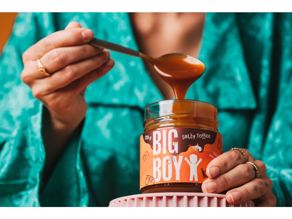 Znáte ten zlatavý, návykový karamel z našeho bestselleru BIG KING? Tak přesně ten jsme vyslyšeli na vaše přání a vyrobili ho samostatně! V plné síle, s pořádnou porcí slaného karamelového štěstí. Žádné kompromisy, žádné čekání na další sousto, tady je hlavní hvězdou jen a jen karamel. Salty Toffee je hedvábně jemný, intenzivně karamelový a decentně slaný. Přesně takový, jaký jsme si ho přáli ,, víc a samotný" ! Hodí se do kaší, na lívance, do dezertů nebo prostě jen tak na lžičku, když si potřebujete osladit den. Takže jestli jste někdy v BIG KINGU hledali ještě víc karamelu... tady ho máte. Splněné přání ve skle.Použití: Případná separace není na závadu. Před konzumací promíchejte. Určeno k přímé spotřebě.