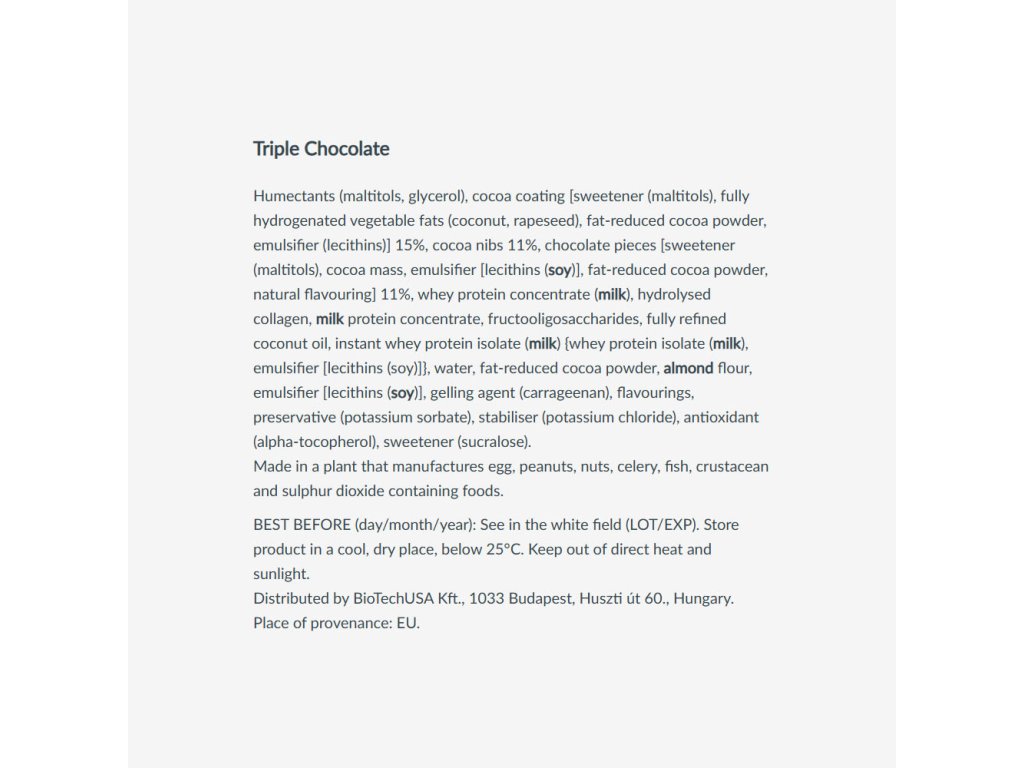Pracujete tvrdě na svých cílech, ale nechcete si odpírat sladké chvilky? Chunky Protein Bar dokazuje, že potěšení z dezertu a uvědomělá výživa mohou jít ruku v ruce!Co získáte, když se atmosféra klasické pochoutky potká s pečlivě vytvořenou tyčinkou bohatou na bílkoviny? Chunky Protein Bar má odpověď: každý kousek přináší jemný povlak, vzrušující kontrasty textur a harmonické spojení intenzivních chutí. Tyčinka, která je zároveň požitkem i chytrou volbou.