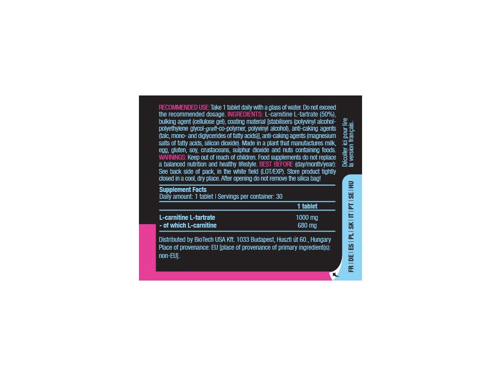 L-karnitin 1000 mg obsahuje vysoce účinnou a čistou formu L-karnitinu: tartrát. Stejně jako všechny ostatní produkty BioTech USA obsahuje L-Carnitine 1000 mg 100% bezpečné, pečlivě vybrané složky
