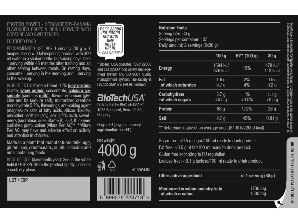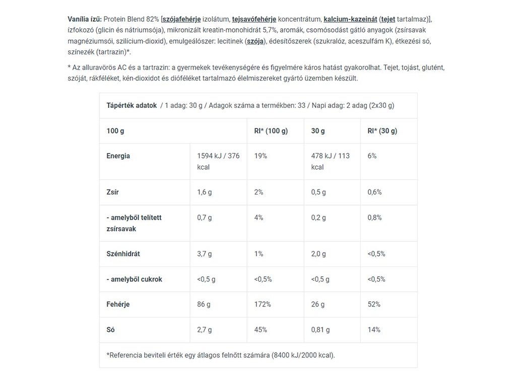 Nové složení je nyní nejen bez cukru a laktózy, ale také bez tuku, přičemž zůstává bez lepku. Výrobek obsahuje také přidaný kreatin.