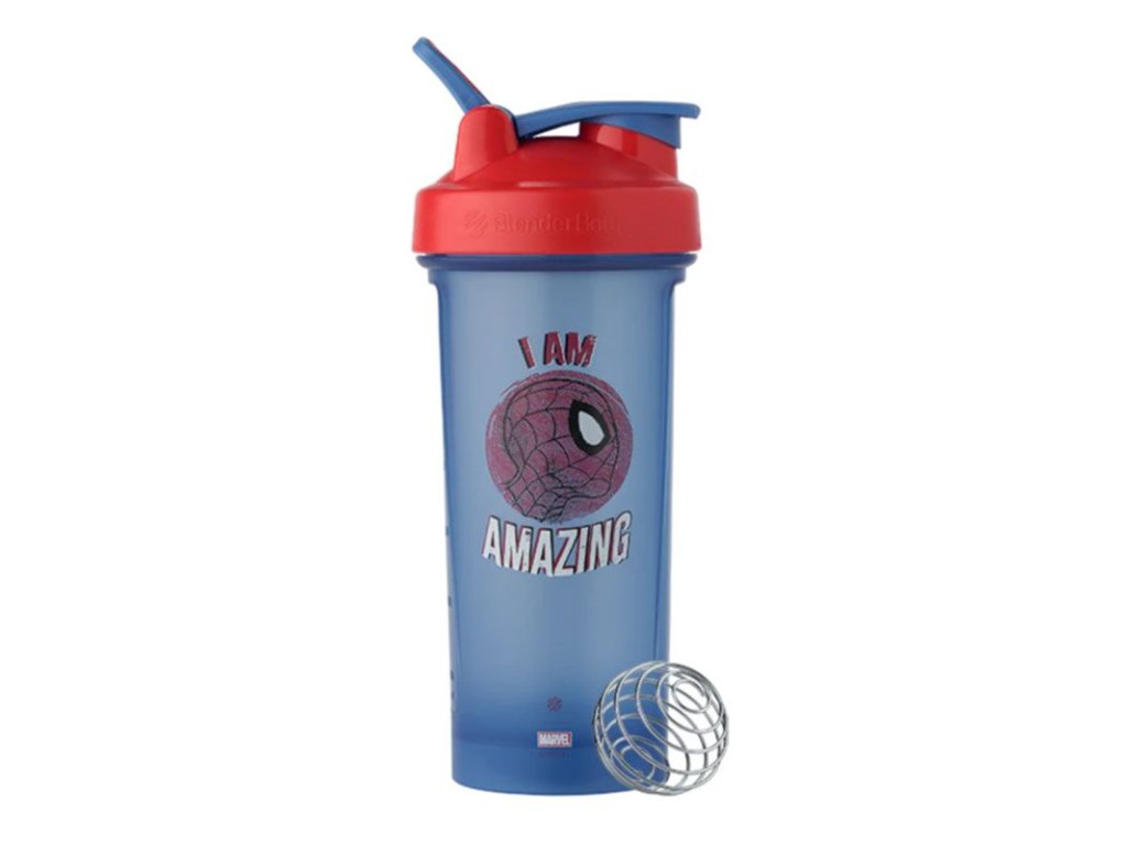 Nový a vylepšený šejkr BlenderBottle Classic Loop Pro SPIDERMAN I AM AMAZING s objemem 820 ml.Nový šejkr Classic Loop Pro se může pochlubit zaoblenou základnou pro lepší míchání, profesionálním SpoutGuardem, který zabraňuje kontaktu s hubicí na pití a tím zabraňuje bakteriím dostat se do nápoje, a vylepšeným moderním designem.