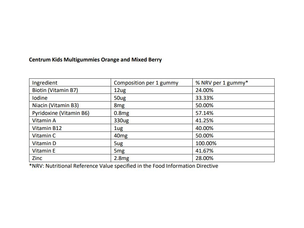 Centrum Kids Multigummies Orange & Mixed Berry byly vyvinuty odborníky, aby kombinovaly důležité živiny ve snadno stravitelném a lahodném ovocném doplňku stravy pro děti od 4 let.