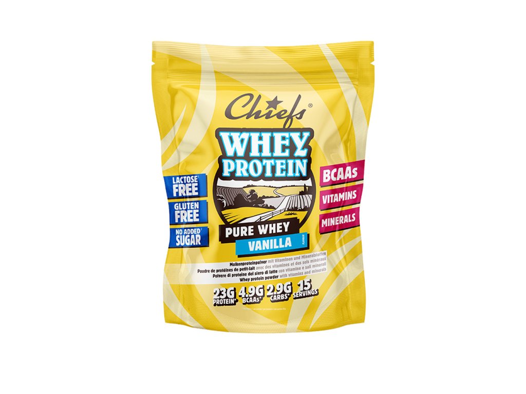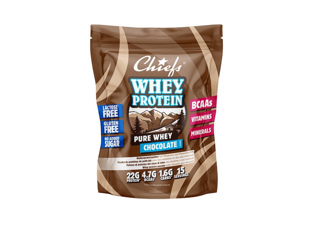 Chiefs Whey Protein je vyroben z biologicky vysoce hodnotného syrovátkového proteinového izolátu a koncentrátu, má vysoký obsah BCAA a je obohacen o vitamíny a minerály.Syrovátkový protein je vysoce kvalitní forma bílkovin, která obsahuje esenciální aminokyseliny nezbytné pro optimální zdraví. A ve srovnání s jinými bohatými zdroji bílkovin je obvykle velmi snadno stravitelný. Vhodný pro vegetariány, kterým chybí bílkoviny z masa. Není však vhodný pro vegany, protože se jedná o mléčný derivát.