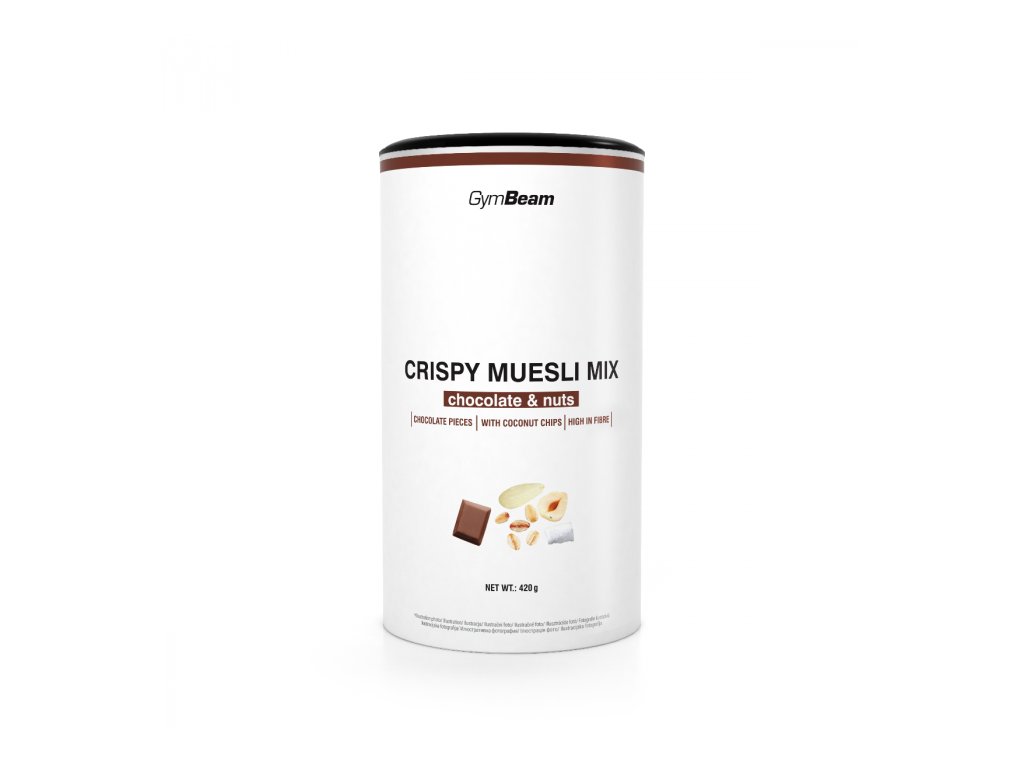 Crispy Muesli Mix je křupavá směs plná ovesných vloček, ořechů, ovoce a dalších dobrot. Důležitou součástí jsou ovesné vločky, díky kterým je směs bohatá na vlákninu a komplexní sacharidy. Při přípravě byly použity ty nejkvalitnější suroviny, a tak můžete mít jistotu, že svému tělu dodáte kvalitní palivo. Jednotlivé kombinace vloček, lupínků, čokolády a ořechů či ovoce spolu skvěle souzní, takže si vychutnáte opravdu každé sousto.