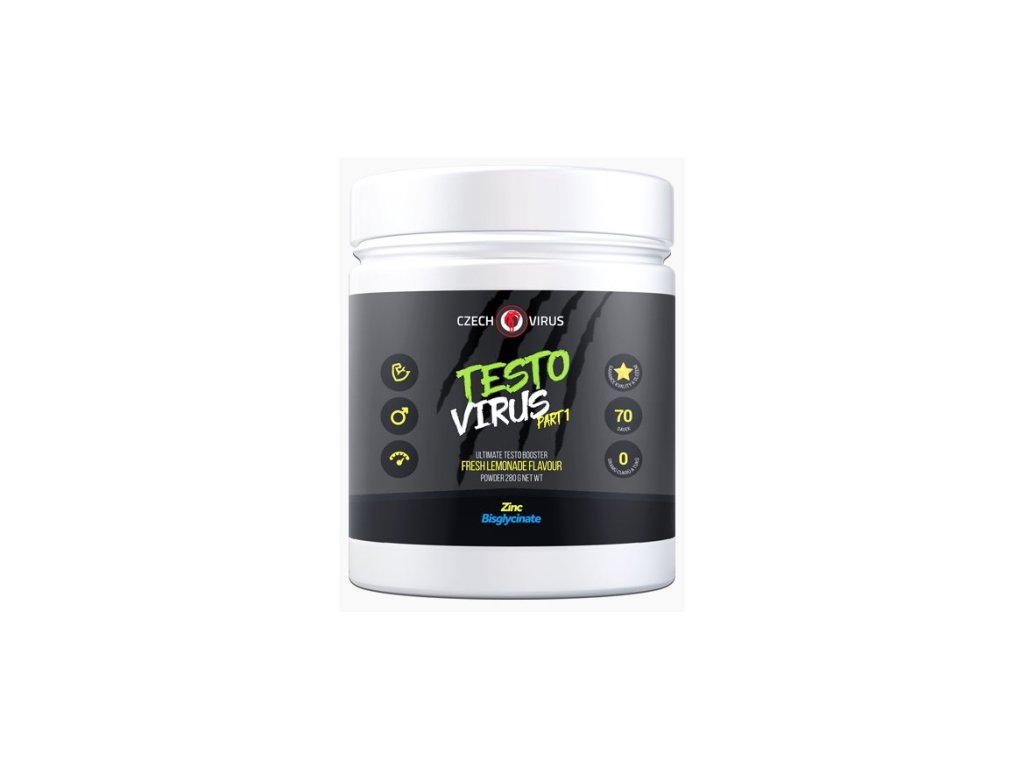 Produkt Testo Virus Part 1 nabízí originální kombinaci složení pro optimalizaci testosteronu. Přispívá k normální plodnosti a reprodukci a k udržení normální hladiny testosteronu v krvi. Náš produkt kombinuje extrémní množství kyseliny D-asparagové se zinkem ve formě bisglycinátu (chelát), bóru a vitamínu D3 (tzv. prohormon). Optimalizace testosteronu by měla být jednou z priorit pro tvrdě trénující jedince, jelikož se od ní odvíjí nepřeberné množství akcí v našem těle. Na základě nejednoho výzkumu je bohužel zřejmé, že mají muži v dnešní době snízené hladiny testosteronu v porovnání s muži pár dekád zpátky. Snížený testosteron má na svědomí naše doba, jsme více obézní, působí na nás více stresu z uspěchané doby a v neposlední řadě do sebe dostáváme více chemických věcí (například BPA nebo Triclosan) ať už potravou nebo jiným způsobem.
