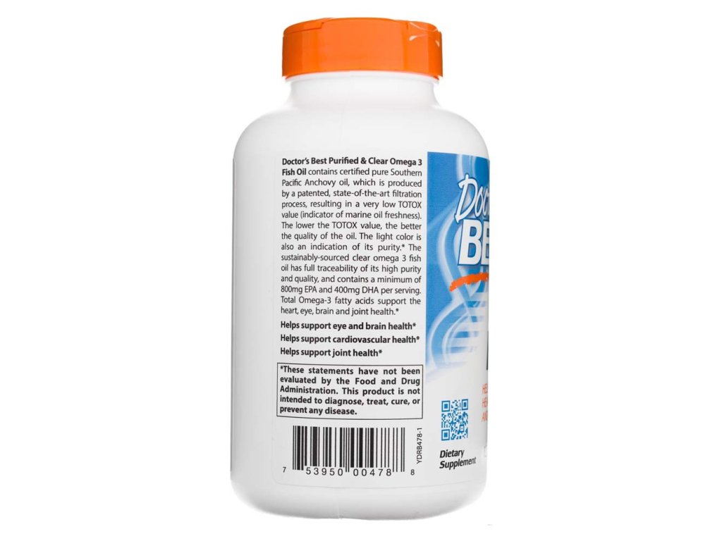 Doctor's Best Purified & Clear Omega-3 Fish Oil – vysoce čistý rybí olej s nízkou hodnotou TOTOX