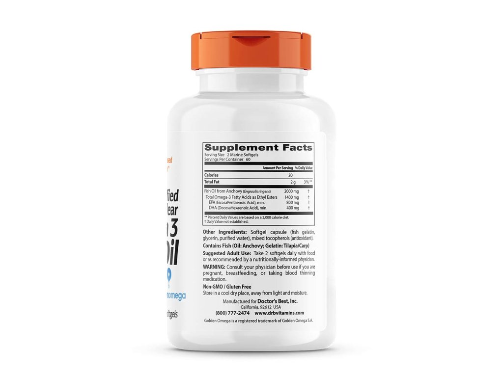 Doctor's Best Purified Omega 3 Fish Oil 1000 mg 120 Softgels
