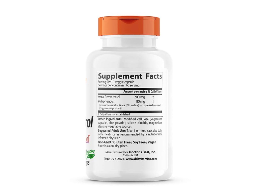 Doctor's Best Trans-Resveratrol 200 s Resvinolem 60 vegetariánských kapslí