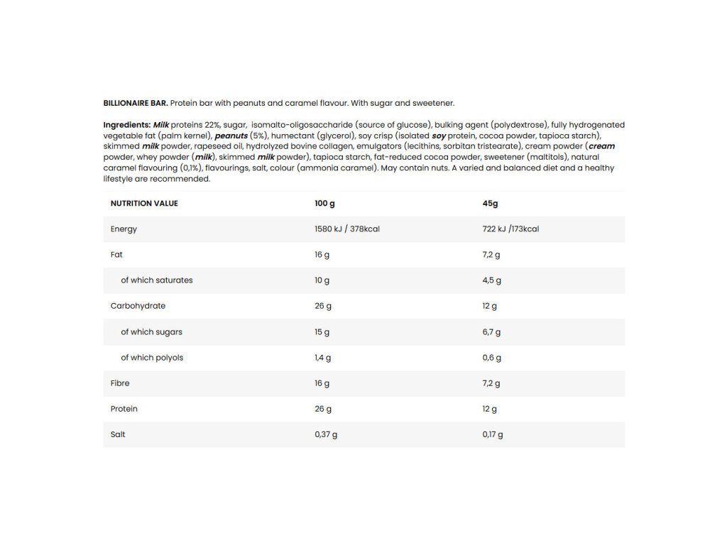 Proteinová tyčinka s arašídy a karamelovou příchutí. Se cukrem a sladidlem.