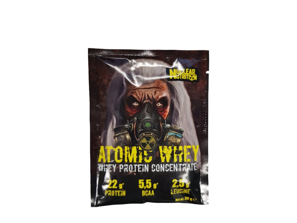 Surovina použitá ve výživě se vyznačuje jedinečnou kvalitou - bílkoviny dodávané díky výživě se vyznačují vysokým obsahem esenciálních aminokyselin. Výrobek umožňuje snadnou a rychlou přípravu vysokoproteinového koktejlu, který je ideální pro cvičence a příznivce zdravé a pestré stravy. Díky absenci problémů s rozpustností se tato živina osvědčuje jako přídavek do pokrmů, jako jsou ovesné vločky, jogurt, koktejly nebo pečivo.ATOMOVÁ WHEY. Se sladidly. Syrovátkový proteinový koncentrát v prášku pro přípravu koktejlů s vysokým obsahem bílkovin. ATOMIC WHEY je určen pro sportovce a fyzicky aktivní osoby s vyšší potřebou bílkovin. Bílkoviny přispívají k růstu svalové hmoty.