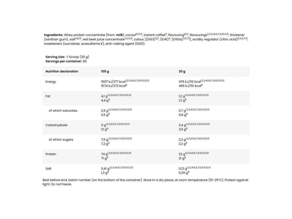 - Jedna porce výrobku obsahuje více než 20 g kompletních syrovátkových bílkovin.