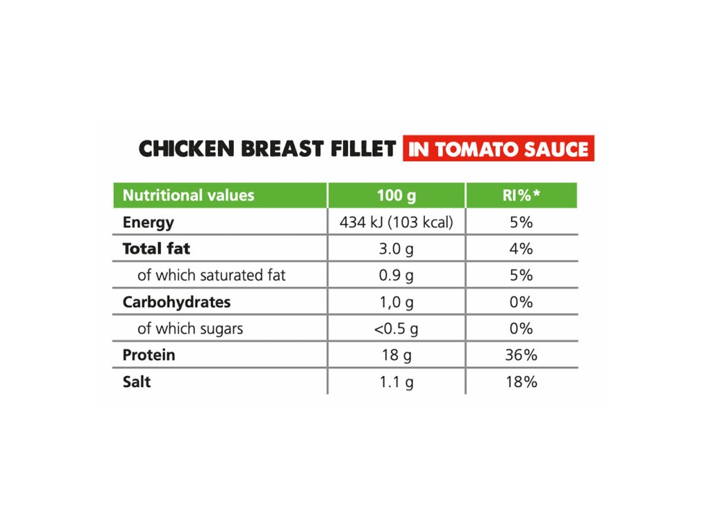 Na rozdíl od většiny masných výrobků je Forpro Kuřecí prsa v rajčatové omáčce vyrobeno ze 100% kuřecího masa – bez sóji či jiných úprav snižujících nutriční hodnotu.