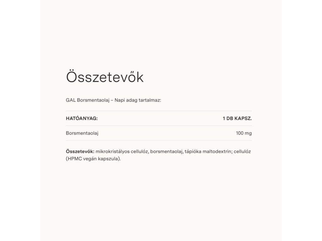 V našem výrobku je mátový olej v rozpustné kapsli, která je odolná vůči žaludečním šťávám a je určena pouze pro tenké střevo, což prokazatelně zvyšuje jeho účinky, v neposlední řadě výrazně snižuje chladivý pocit mentolu způsobený refluxem mentolu v žaludku a jícnu.Upozornění