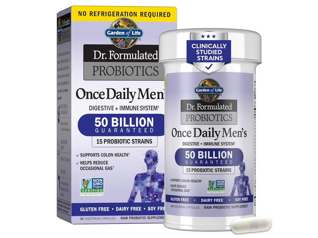 Probiotika speciálně navrženy pro muže. Dr. Formulated Once Daily Men's nabízí mužům podporu zdravějšího trávicího traktu, imunitního systému a tlustého střeva. Je zcela hypoalergenní, bezlepkový. Obsahuje více než 50 miliard probiotických kultur, které pomáhají přinést rovnováhu do vašeho těla.