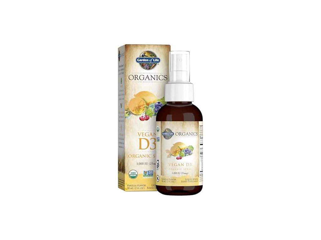 - Vyroben z výživných potravin, (je bez lanolinu - získávaného z ovčí vlny). Organics Vegan D3 je certifikovaný USDA Organic, Non-GMO Project Verified a je bez syntetických pojiv a plniv. Vše je k dispozici ve spreji s lahodnou vanilkovou chutí!