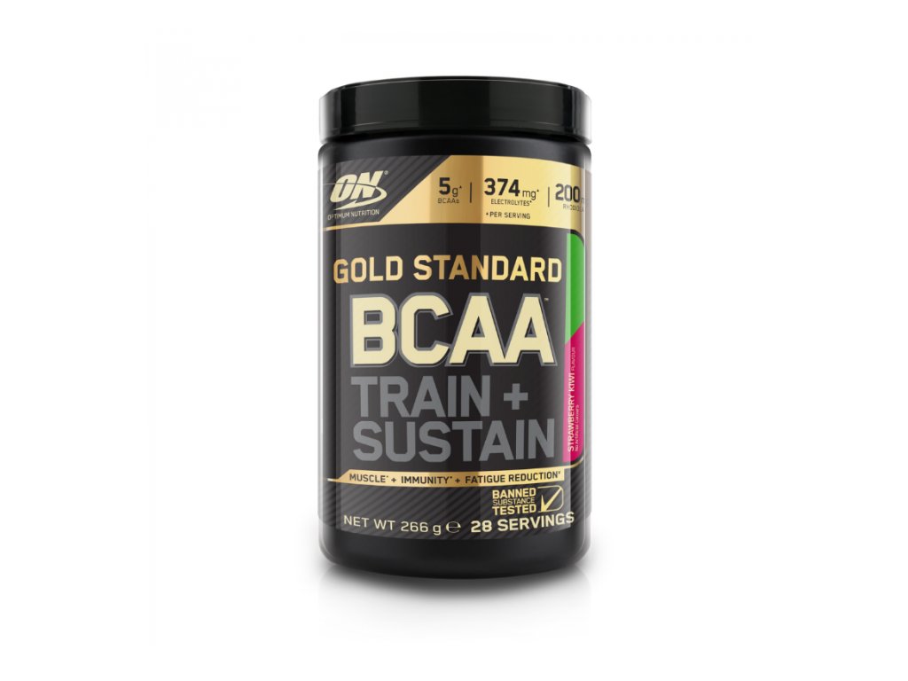Gold Standard BCAA Train Sustain je promyšleně sestavená prášková směs s ovocnou příchutí, která v sobě spojuje aminokyseliny s rozvětveným řetězcem (Branched-Chain Amino Acids), tedy leucin, isoleucin a valin v ověřeném poměru 2:1:1. Dále pak obsahuje důležité elektrolyty, výtažek z rhodiolu rosea, zinek a vitamín C.