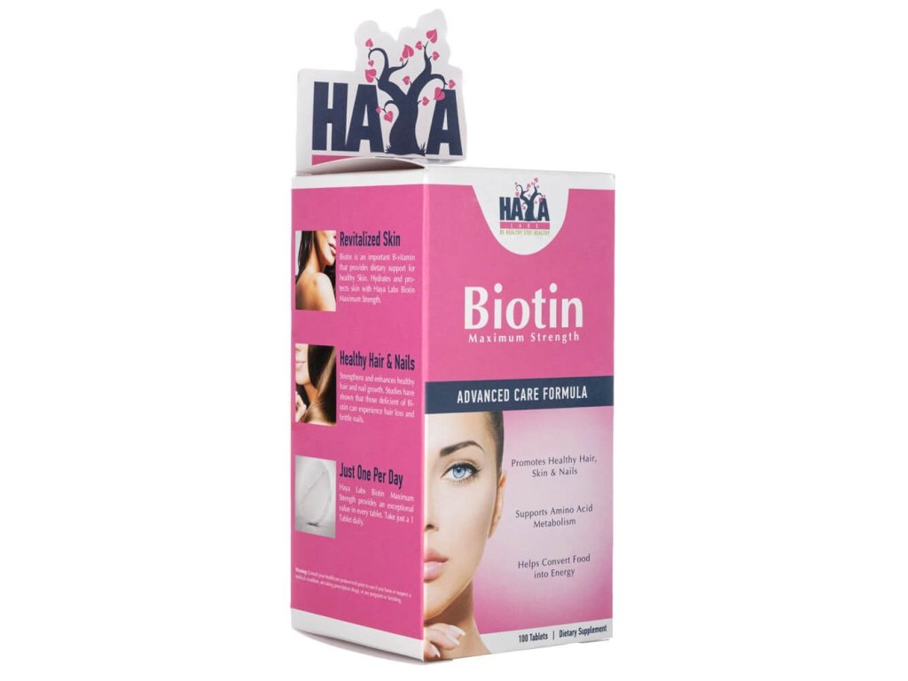 Biotin Maximum Strength od Haya Labs je vysoce účinný doplněk stravy s extra silnou dávkou biotinu (vitamín B7), který přispívá ke správné funkci metabolismu, podporuje zdraví vlasů, pokožky a nehtů a napomáhá celkové vitalitě organismu.