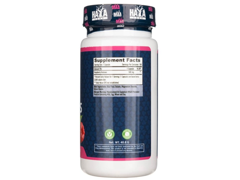 Raspberry Ketones od Haya Labs , je doplněk stravy v kapslích na bázi přírodních složek získaných z plodů malin s obsahem malinových ketonů. Malinové ketony se přirozeně vyskytují v plodech malin a jsou zodpovědné za jejich charakteristickou sladkou chuť.