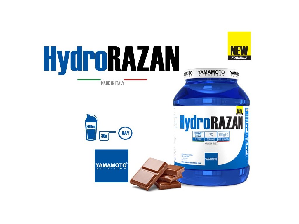 Hydro Razan je vyrobený výhradne z Optipep® 90, jedného z najkompletnejších a najkvalitnejších zdrojov bielkovín dostupných na súčasnom trhu. Hydrolýza je proces oddeľovania proteínov do jednoduchších molekulárnych štruktúr, peptidov pozostávajúcich z malých reťazcov aminokyselín, vysoko stráviteľných a biologicky dostupných v krátkom časovom období. Okrem toho produkt obsahuje laktázové a bromelaínové tráviace enzýmy. Nakoniec je produkt doplnený probiotickými mikroorganizmami, ktoré podporujú rovnováhu črevnej flóry.