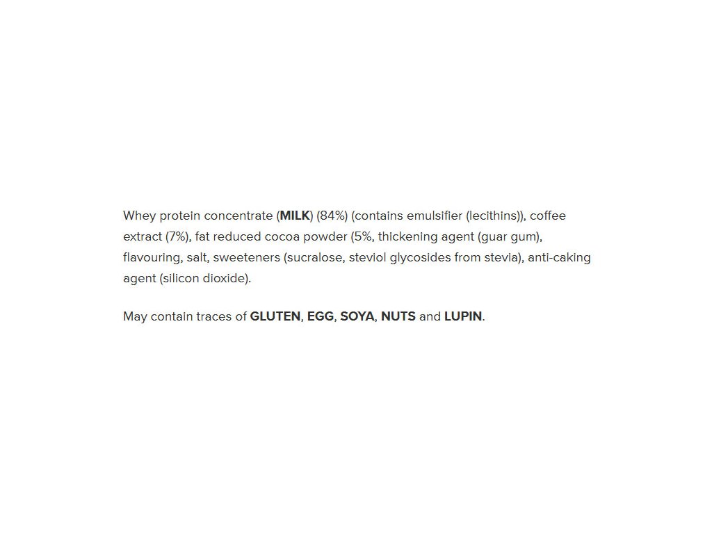 - Proteinová káva s extraktem z pravé kávy a vysoce kvalitním syrovátkovým proteinovým koncentrátem.