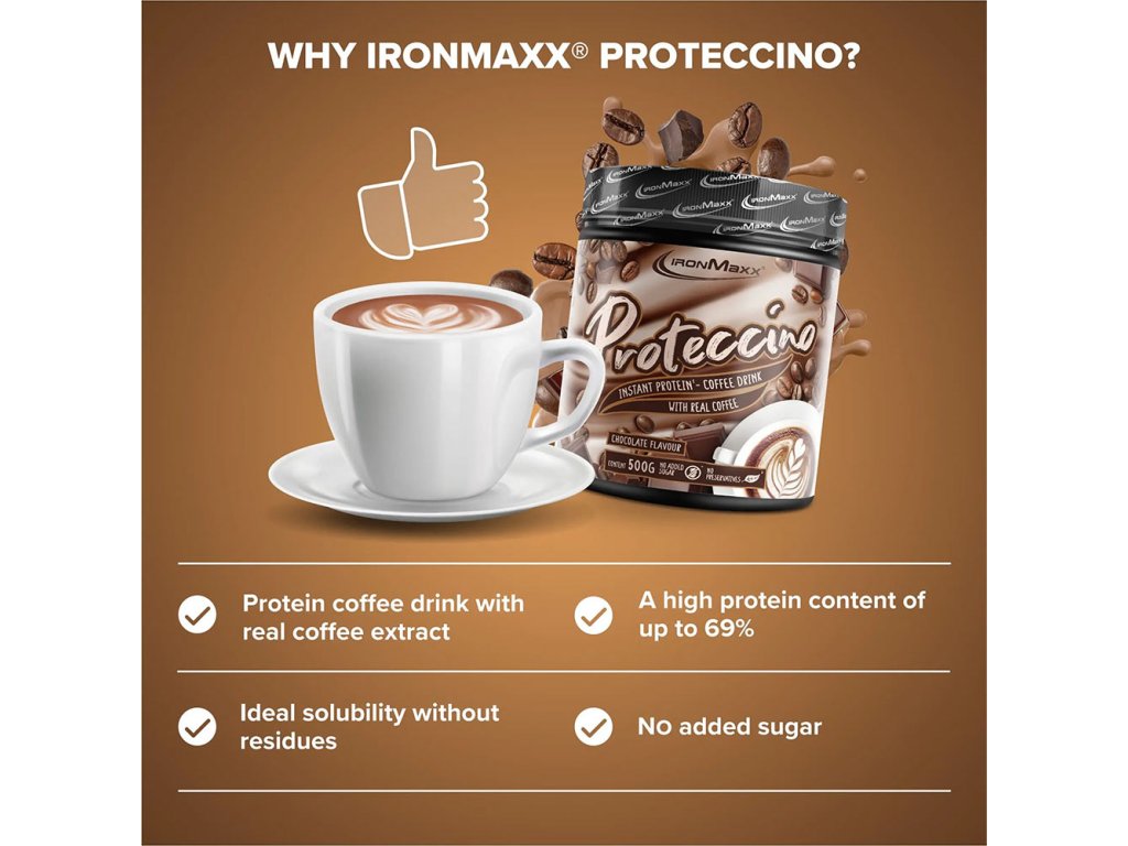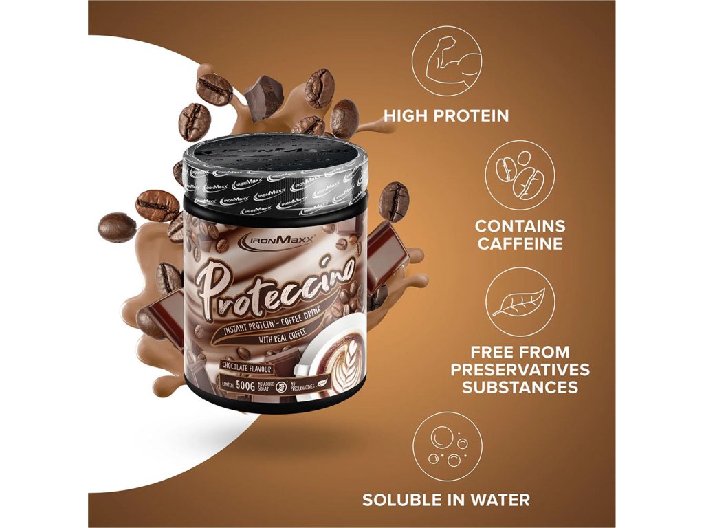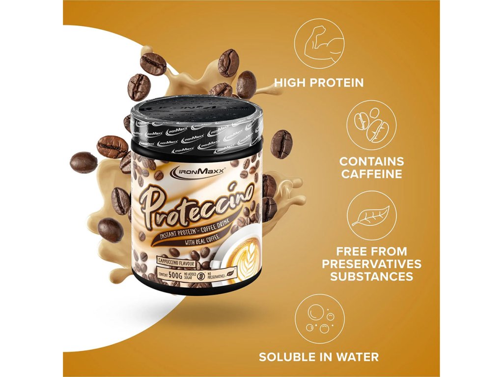Ať už potřebujete před tréninkem dodat energii, nebo jen lahodnou proteinovou kávu mezi jídly, instantní proteinová káva Proteccino je pro vás ideální volbou. Objevte neodolatelnou chuť kávy Proteccino v různých příchutích včetně cappuccina a čokolády. Každá varianta proteinové kávy slibuje krémovou, lahodnou pochoutku, která vás potěší a zároveň dodá vysoce kvalitní bílkoviny. Ponořte se do světa vysokoproteinových káv a zažijte požitek a fitness v jednom výrobku!