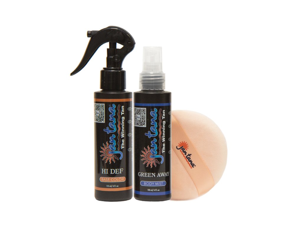 - nastříkejte na celé tělo a do podpaží Jan Tana Green Away, nechte vstřebat a poté aplikujte soutěžní barvu Jan Tana